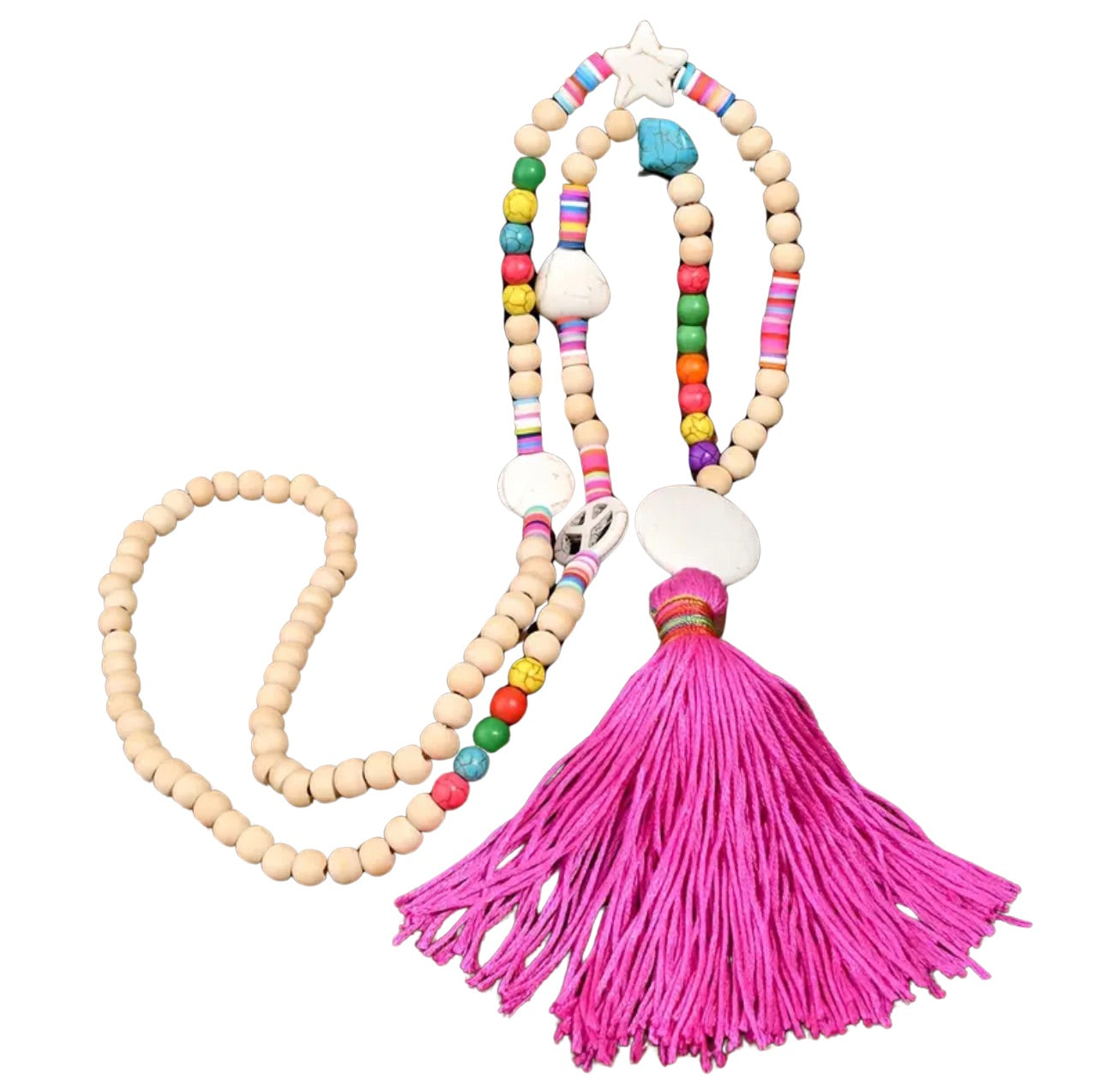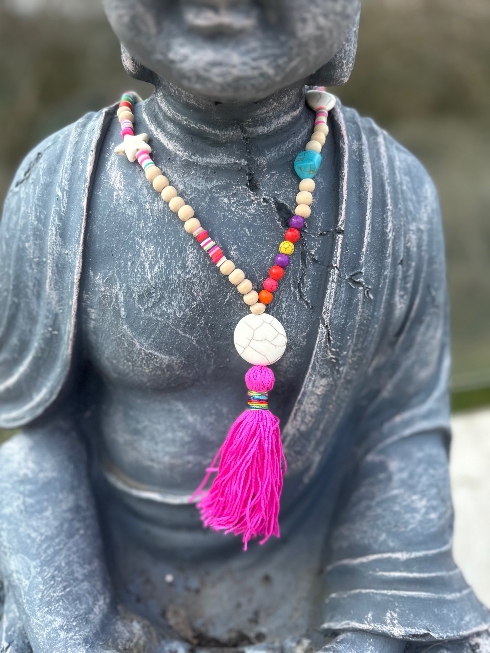 Diese Kette ist ein echter Hingucker und lässt sich perfekt mit Sommerkleidern, Strandoutfits oder Casual-Looks kombinieren. Der große Quastenanhänger sorgt für eine verspielte Note und macht jedes Outfit zu etwas Besonderem.